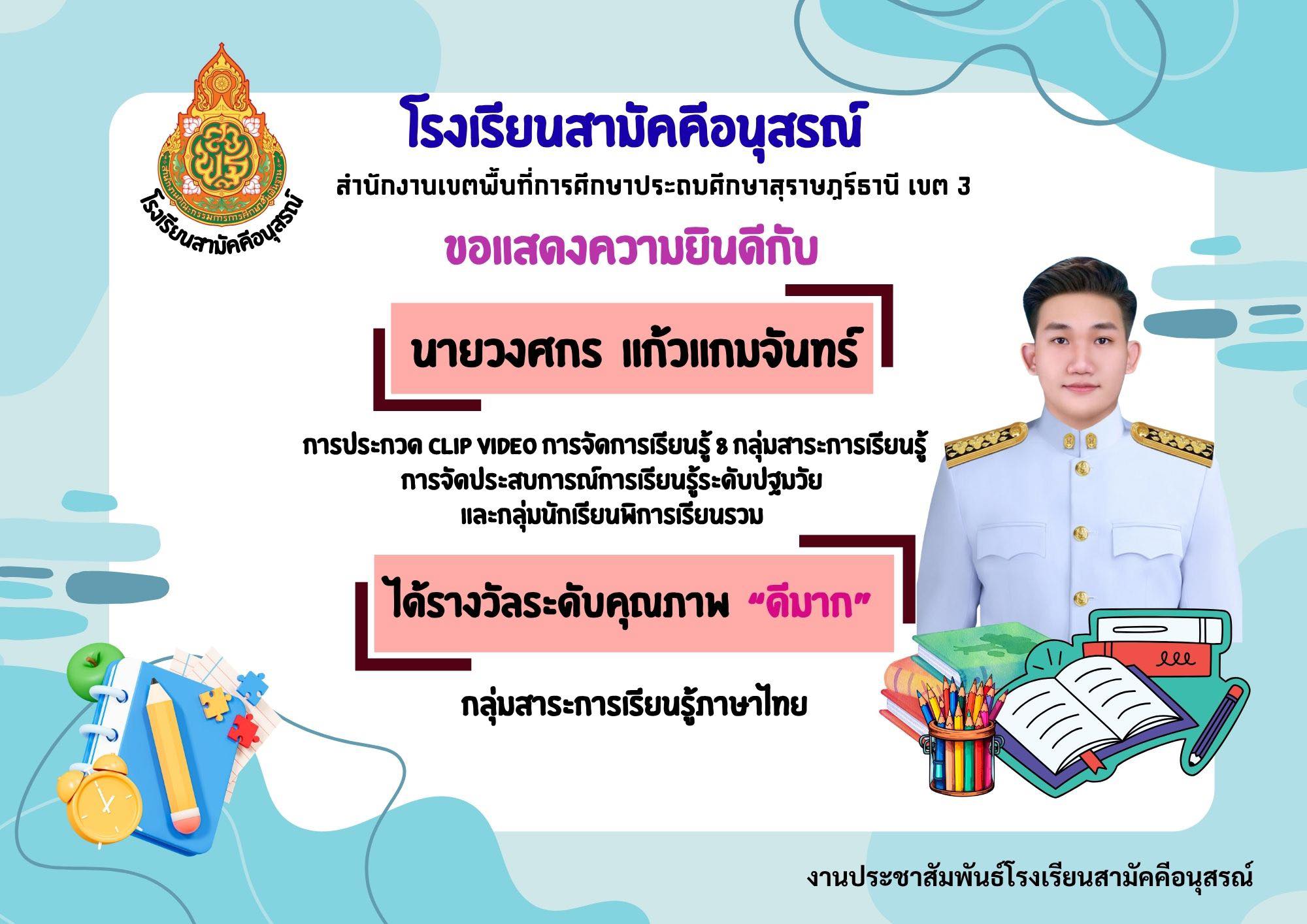 ชื่อผลงาน : การประกวดสื่อ Clip video การจัดการเรียนรู้ 8 กลุ่มสาระการเรียนรู้ การจัดประสบการณ์การเรียนรู้ระดับปฐมวัย และกลุ่มนักเรียนพิการเรียนรวม ประจำปีงบประมาณ พ.ศ. 2568