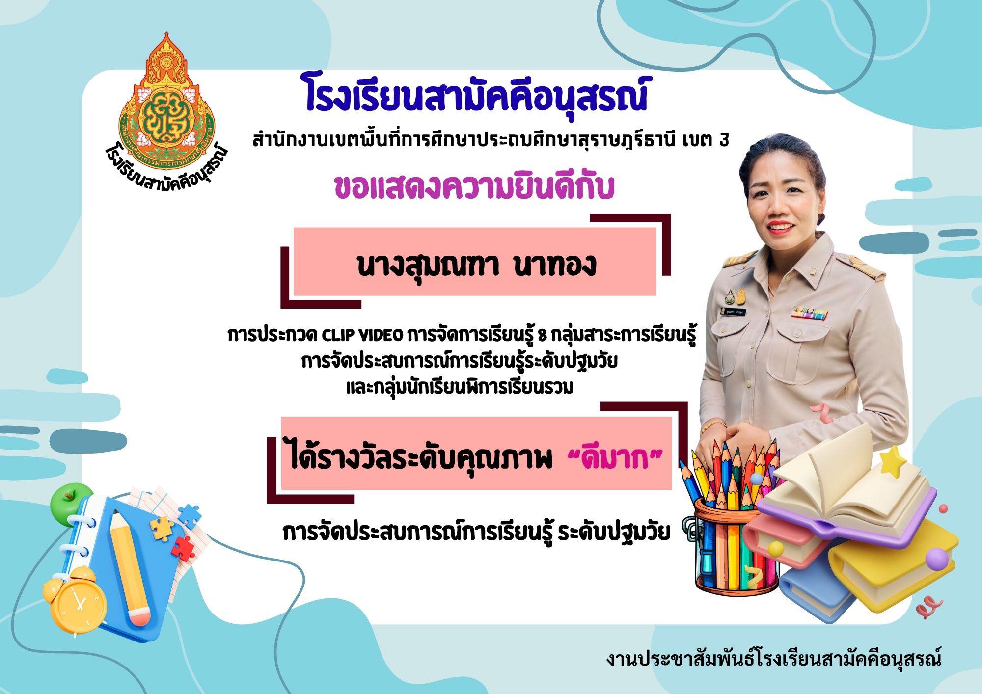 ชื่อผลงาน : การประกวดสื่อ Clip video การจัดการเรียนรู้ 8 กลุ่มสาระการเรียนรู้ การจัดประสบการณ์การเรียนรู้ระดับปฐมวัย และกลุ่มนักเรียนพิการเรียนรวม ประจำปีงบประมาณ พ.ศ. 2568
